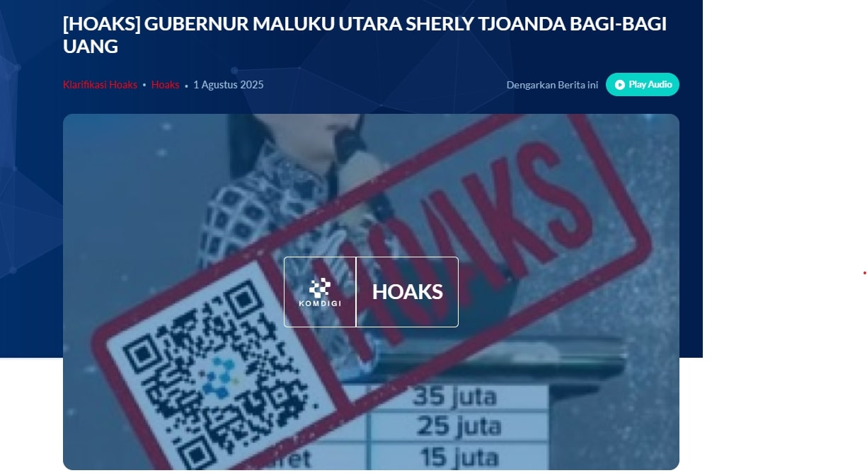 Link Counter : https://turnbackhoax.id/2025/07/31/penipuan-gubernur-maluku-utara-sherly-tjoanda-bagi-bagi-uang/